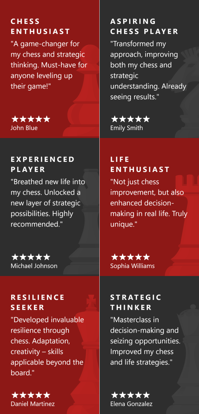 “Not just chess improvement, but also enhanced decision-making in real life. Truly unique.”